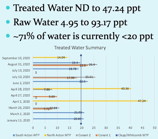 Mostoller: The Clapp and Whitcomb wells, located on the Boxborough town line, have exhibited concentrations of PFAS ranging from 7.99 to 23.28 parts per trillion. The treated water from these sources has been non-detect for PFAS6.